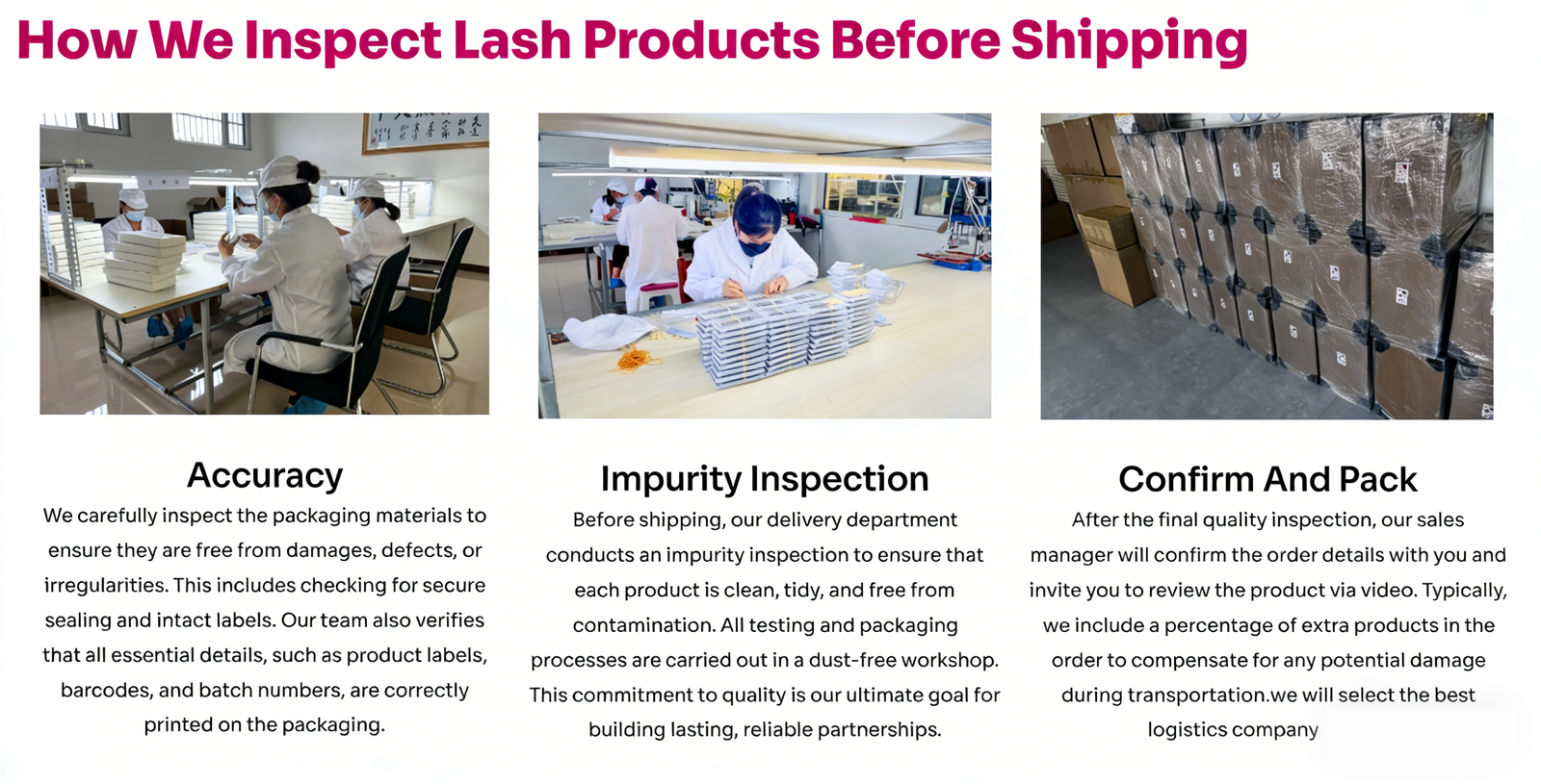 Quality control is an integral part of our manufacturing process. We have implemented a stringent quality control system to ensure that every lash product meets our high standards.